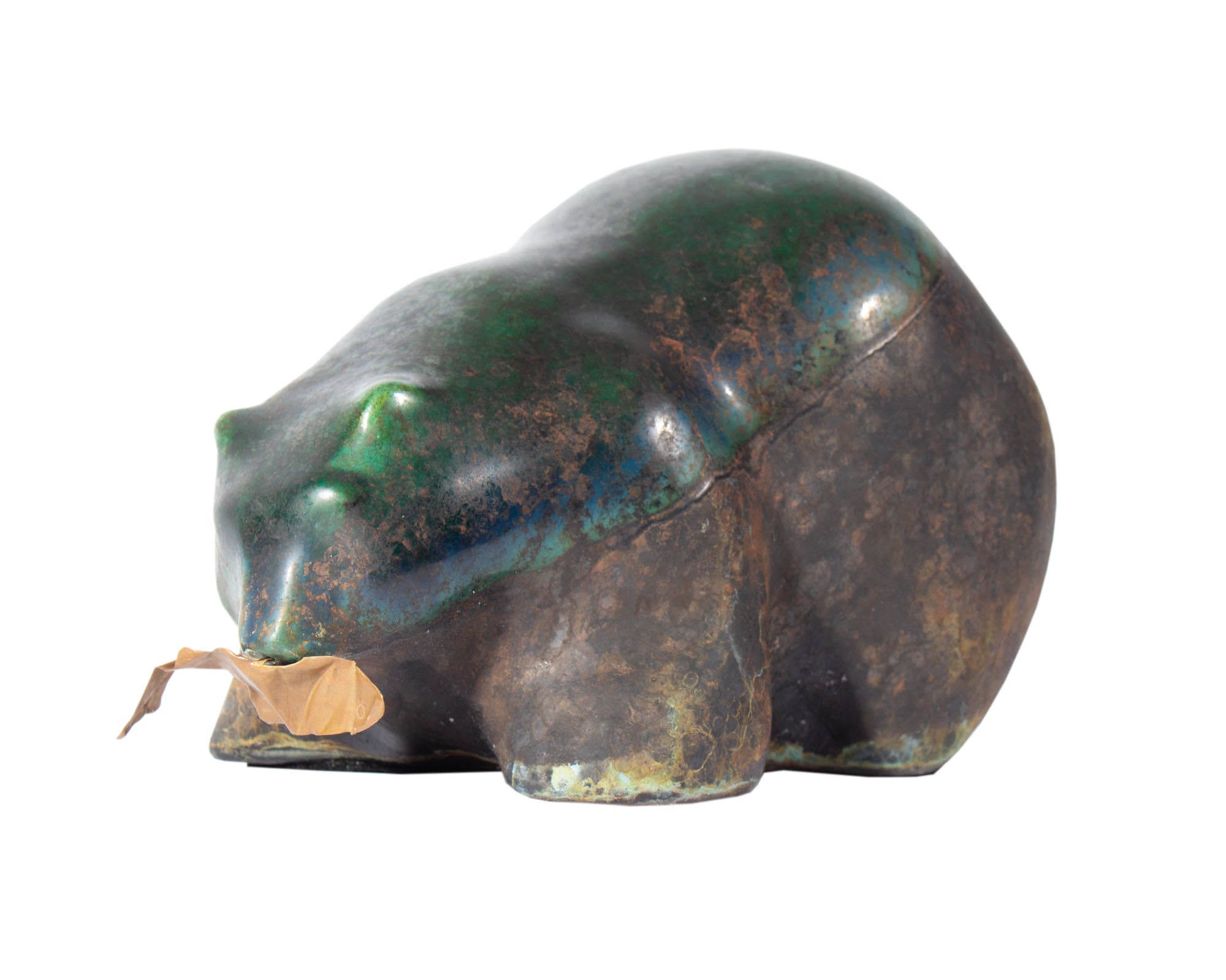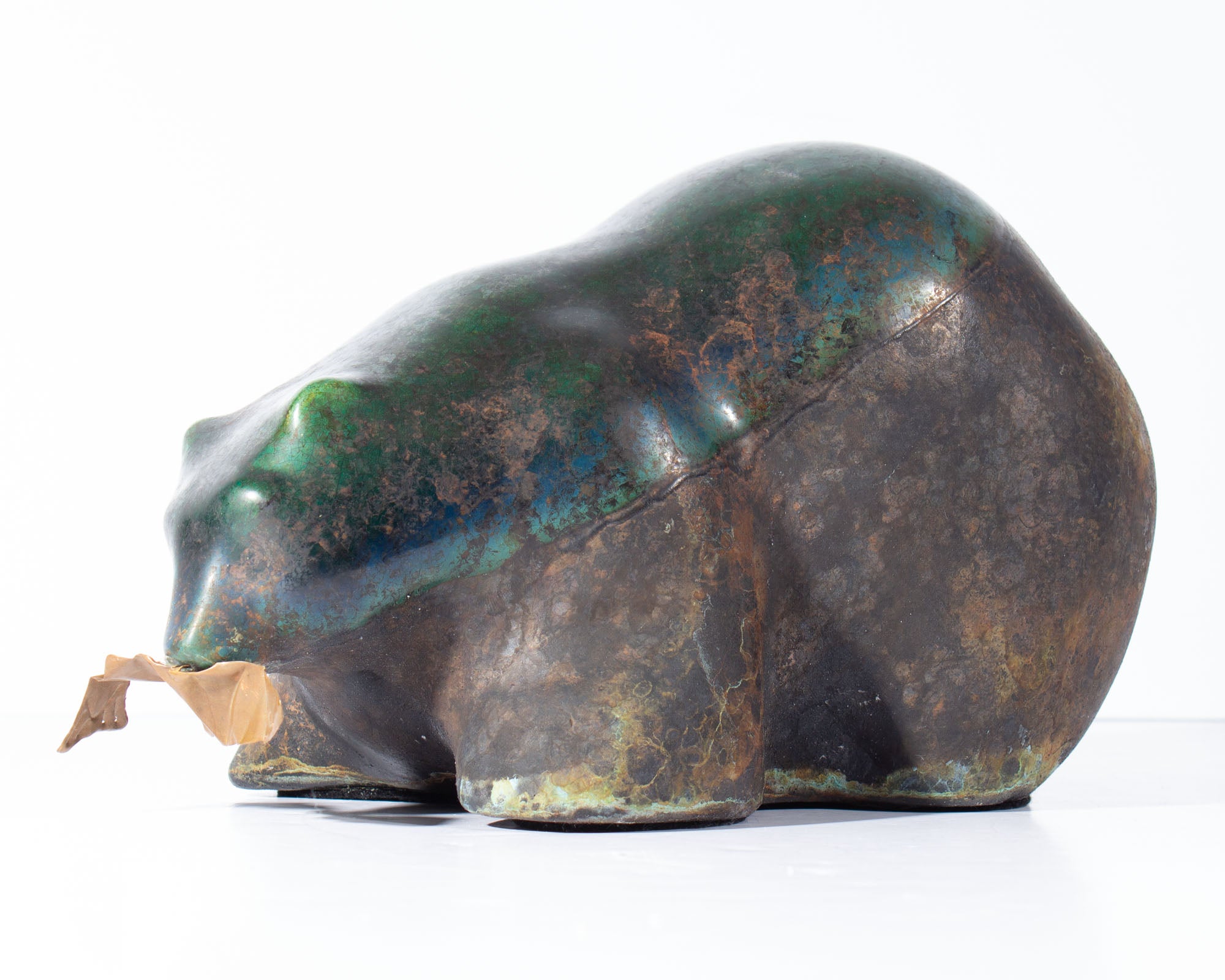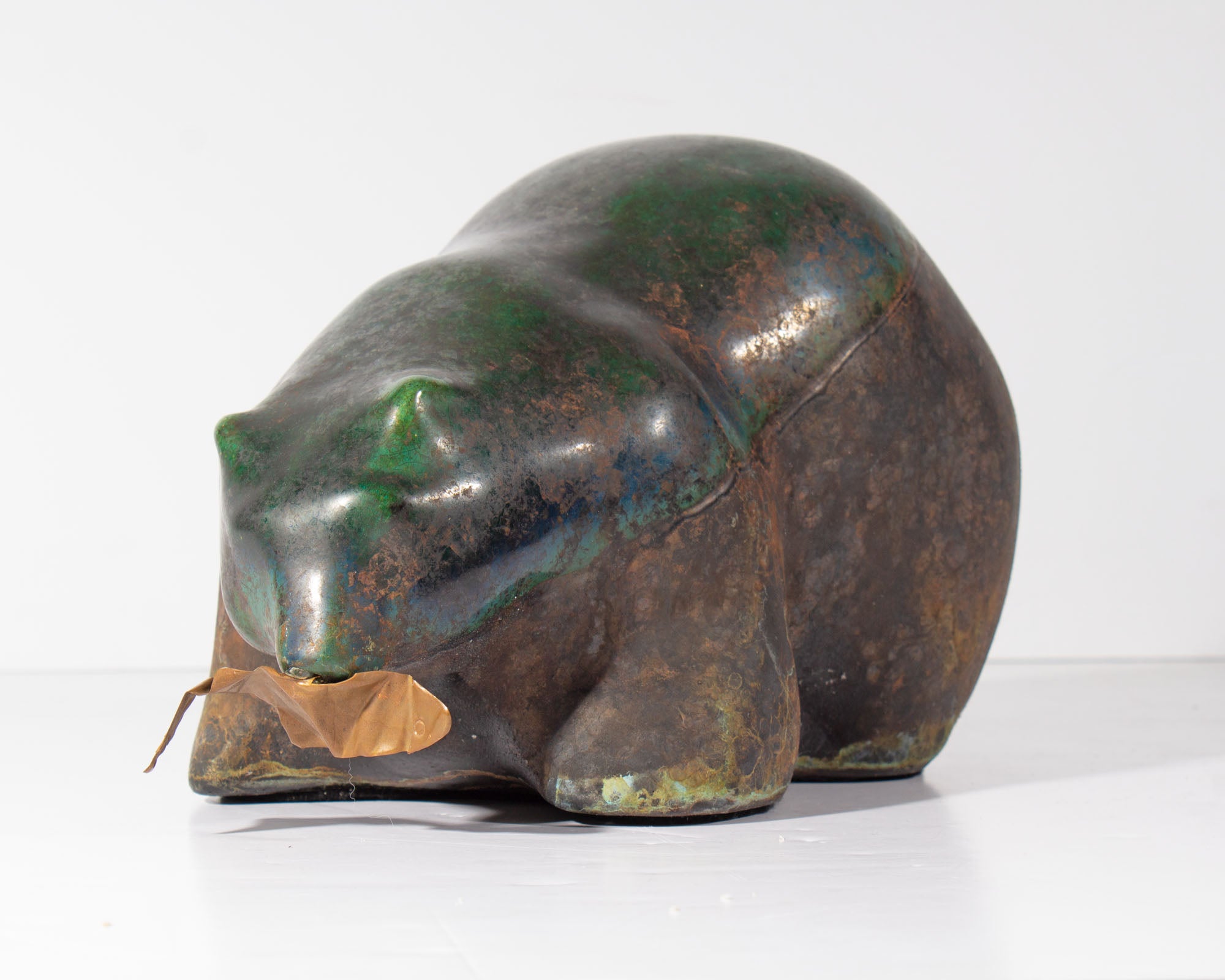 Tony Evans Raku Pottery Bear with Copper Fish