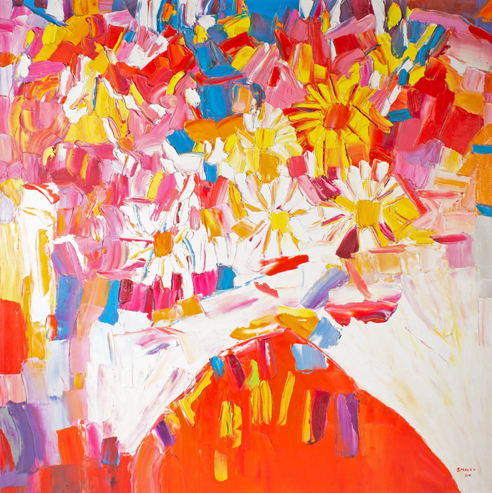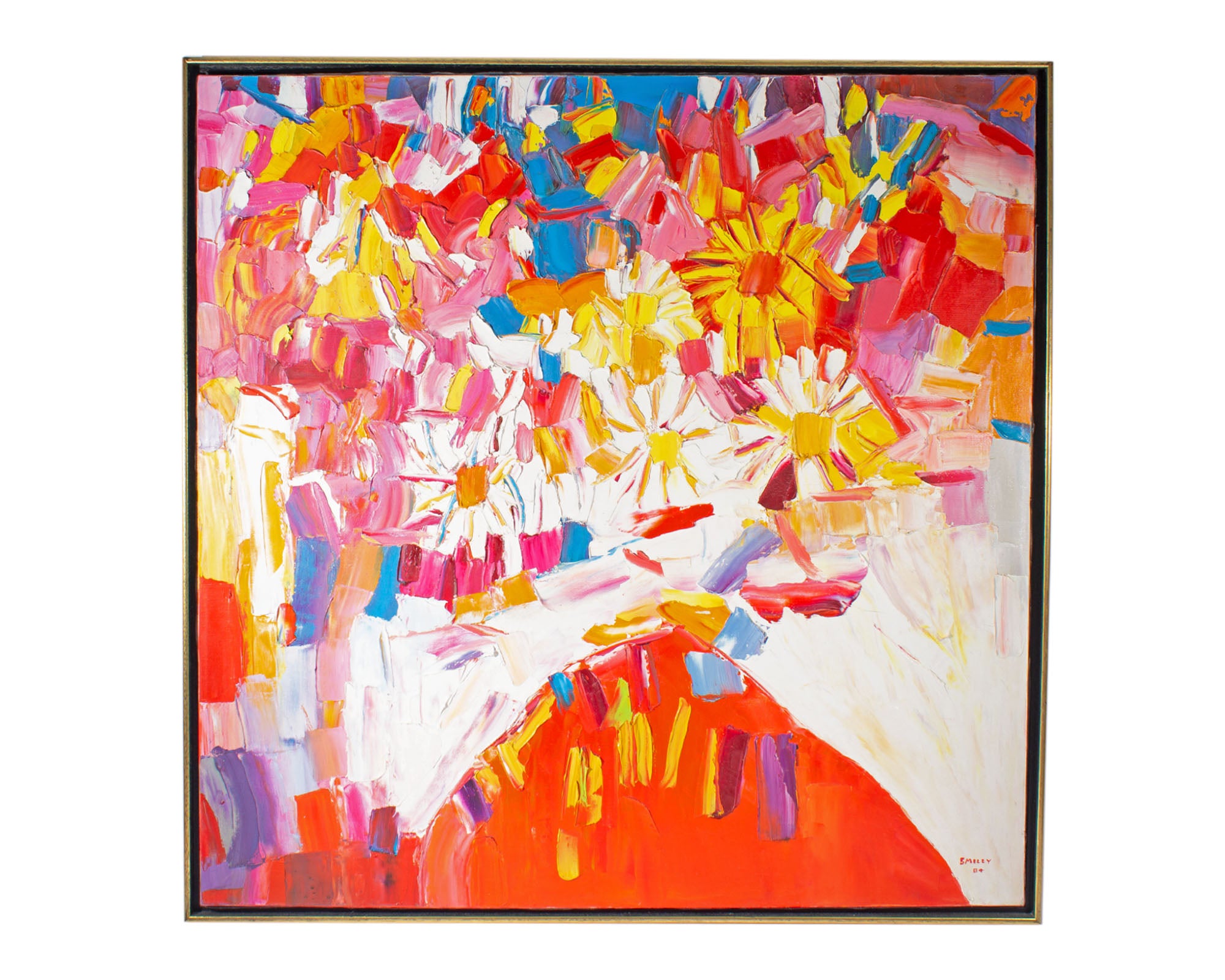 Sidney Smiley 1984 Abstract Oil on Canvas Painting of Flowers