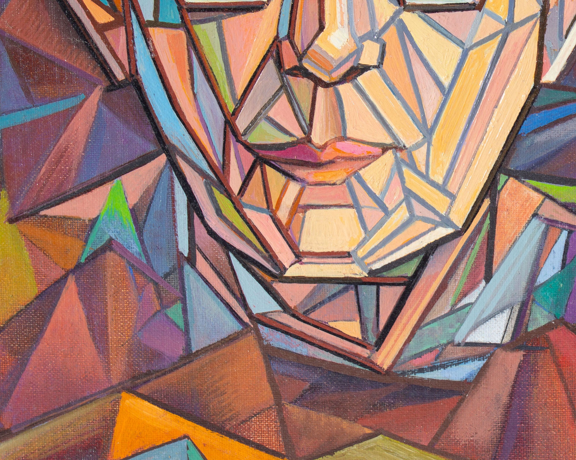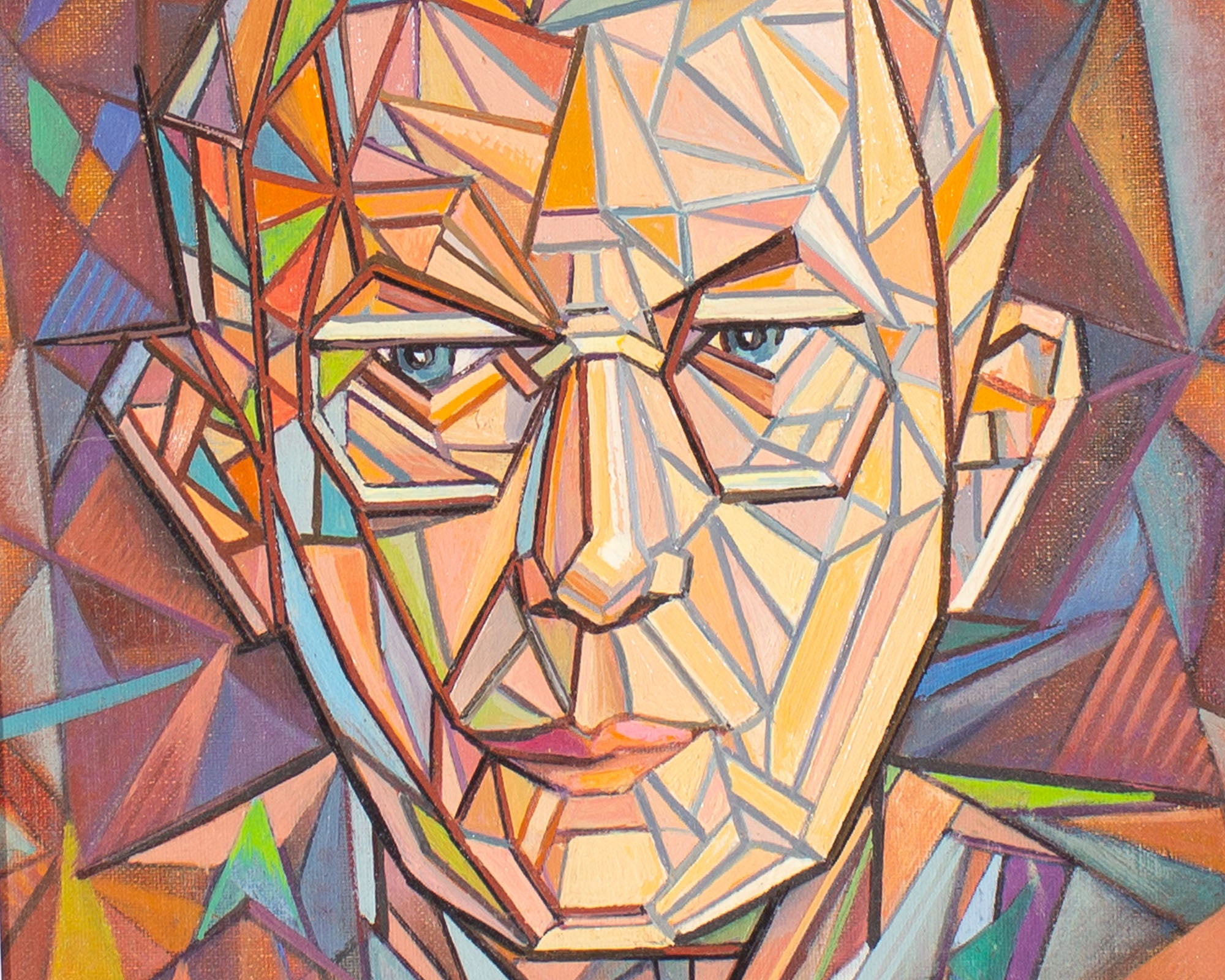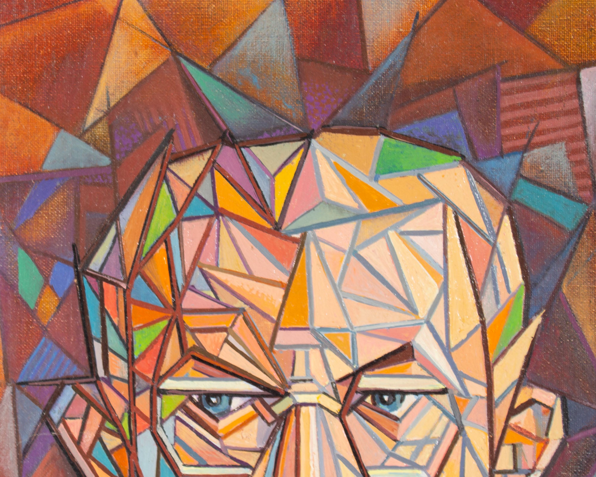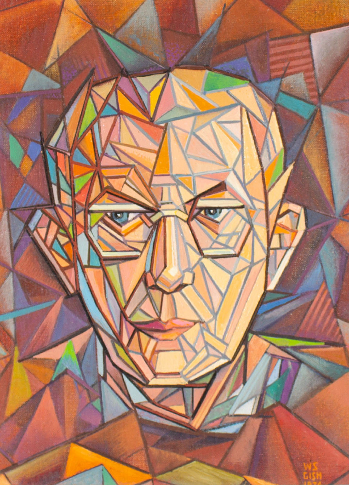 William S. Gisch 1974 Oil on Board Cubist Style Portrait Painting