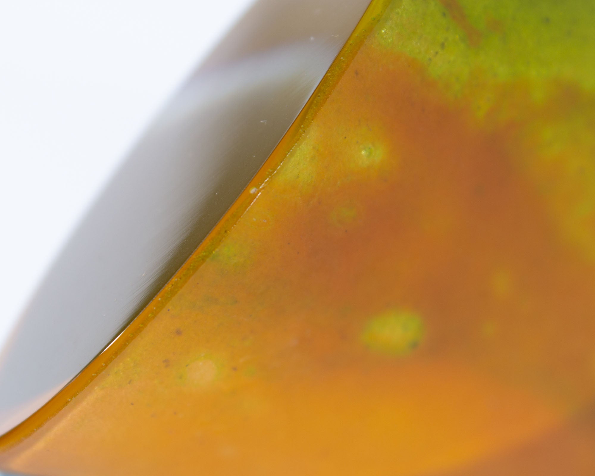 Two extremely small nicks in the glass edge, one at top and one on spout.